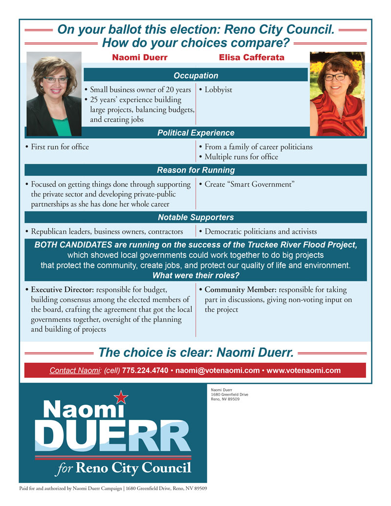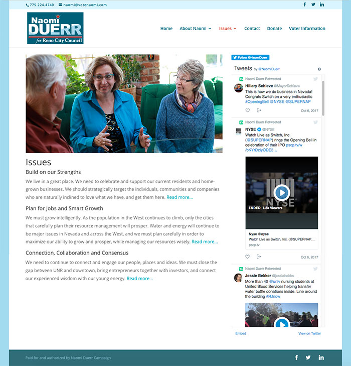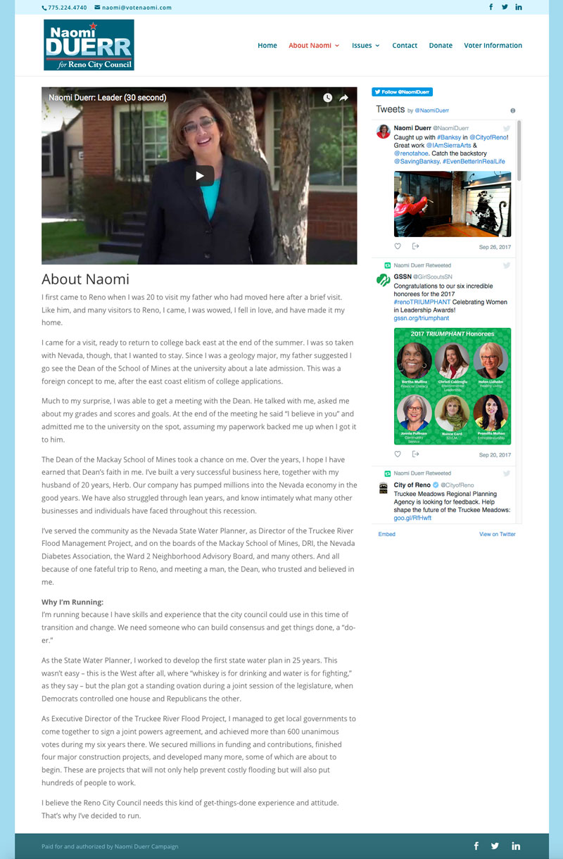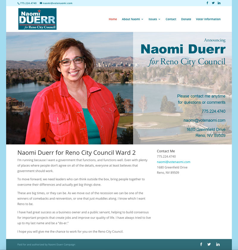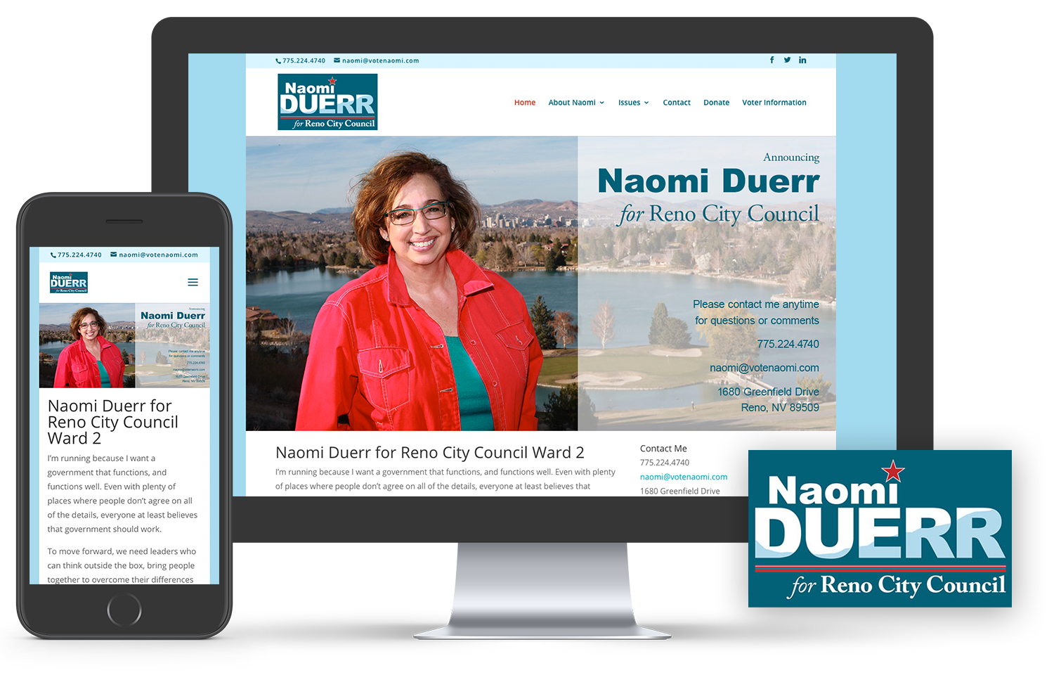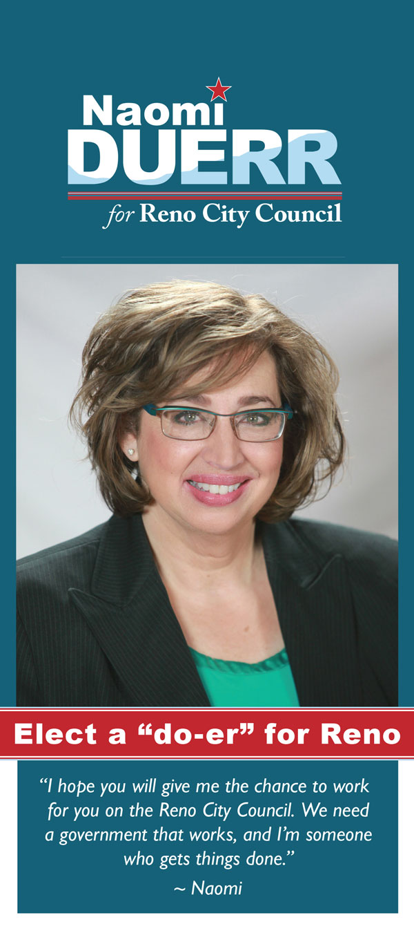 Naomi Duerr decided to run for Reno City Council to make a difference, but this was her first time running for any office. We had to create an identity, website, walk cards, mailers, yard signs, and even some event invitations over the course of her successful campaign.